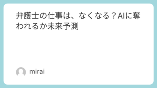 行政・士業系 弁護士の仕事は、なくなる?AIに奪われるか未来予測 はじめに生成AIの台頭により、「弁護士の仕事は、なくなる?AIに奪われるか未来予測」という不安の声が高まっています。本記事では、短期〜長期の時間軸ごとに、弁護士業務のどこが代替されやすく、どこが残りやすいのかを整理し、将来への備えを具体的に... 2025.08.23 行政・士業系