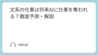 医療・福祉系 文系の仕事は将来AIに仕事を奪われる?徹底予測・解説 「文系の仕事は将来AIに仕事を奪われる?」という問いは、これから進路を決める学生や、すでに文系職に従事している社会人にとって、とても気になるテーマです。本記事では、学生・社会人それぞれに向けて、AI時代における進路やキャリア形成の考え方を分... 2025.09.08 医療・福祉系